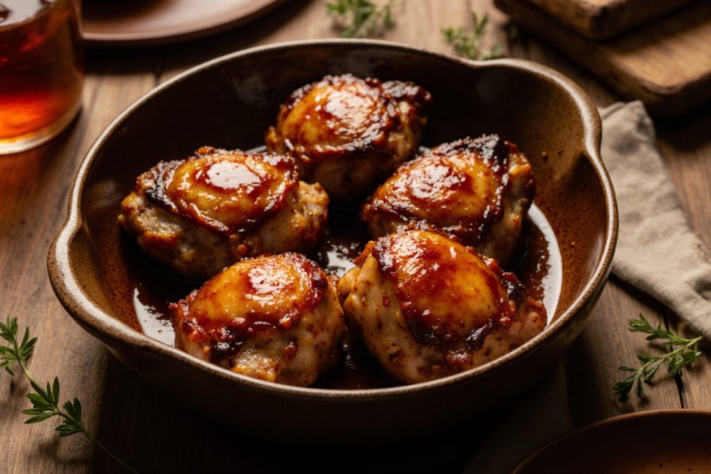 Caramelized BBQ Chicken Thighs in the Oven are juicy and easy to make — a comforting dinner that your family will love every time.